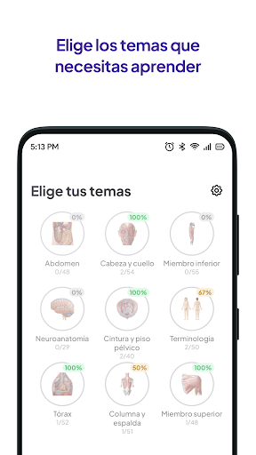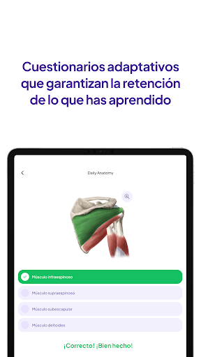 Empezar a aprender anatomía puede ser una experiencia un poco abrumadora, pero no debería ser así. Daily Anatomy puede utilizarse sin ningún conocimiento previo. Empieza por lo básico y pon a prueba tu conocimiento cada vez más a través del tiempo. Aprender con Daily Anatomy no es sólo una tarea de repetición ya que presenta la información de distintas maneras. Resolver el mismo problema de diferentes formas te ayuda a retener la información durante más tiempo, y por supuesto, podrás asimilarla por completo. Ya sea que te estés preparando para un examen o si la deseas utilizar durante tu carrera profesional, todas las estructuras anatómicas estarán en tus manos. ¡No lo pienses más, es hora de aprender!