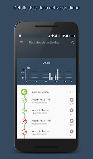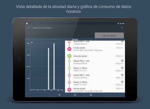 ★ Gráfica del consumo diario, tanto para datos descargados y subidos, con información detallada sobre cada evento de tethering y estadísticas por hora.