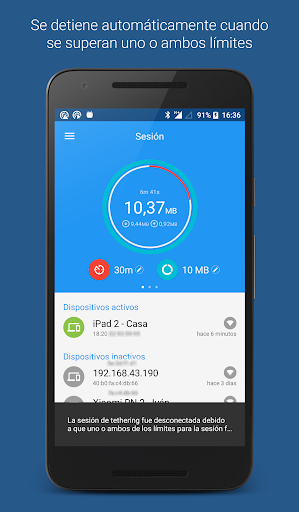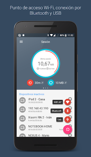 Data Sharing es una app de gestión y control del anclaje de red y zona WiFi (Tethering). Ya no te llevarás más sorpresas al compartir tus datos móviles y agotarlos sin darte cuenta. Comparte sabiendo los datos que consumes y evita gastar más de lo que quieres poniendo límites.