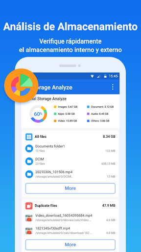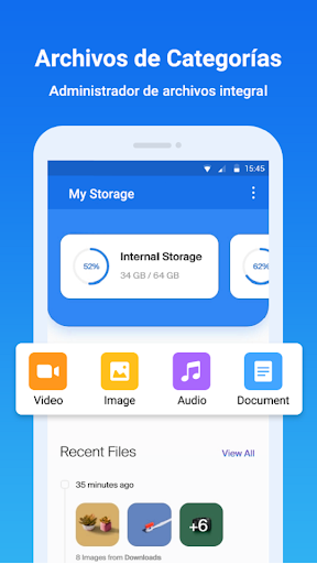 : Puede administrar todos los archivos y carpetas en su almacenamiento interno y almacenamiento externo.