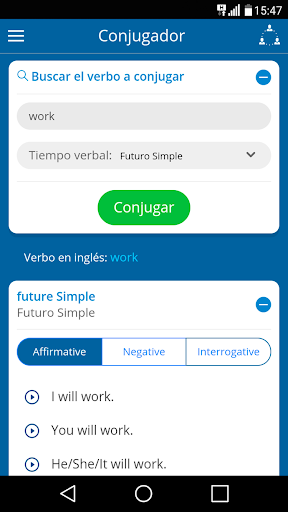 ✔ RECURSOS: Ten siempre a mano herramientas muy útiles que te acompañarán en el estudio del inglés: diccionario, traductor, conjugador de verbos, pronunciación de palabras!