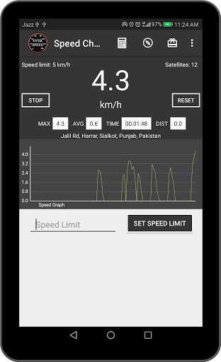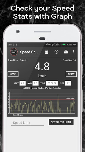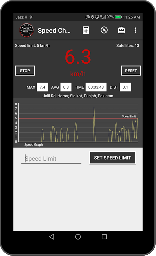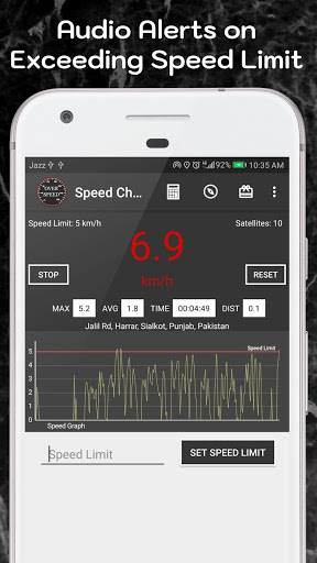 • El medidor de velocidad proporciona un botón de grabación y detener para grabar el máximo alcanzado Velocidad, velocidad promedio, el tiempo total se toma y se cubre la distancia total.