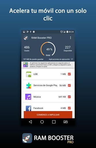 - Acelerador de un clic (Haga clic en acelerar y nosotros haremos la aceleración de su dispositivo).