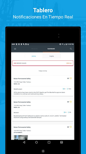 ▪ Actividad del tablero: Manténgase informado con actividades en la obra