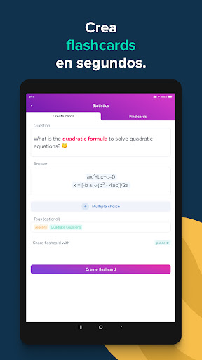 ¡La mejor aplicación de estudio gratuita para la escuela y la universidad! Crea flashcards y apuntes de estudio en tiempo récord. Accede a materiales de estudio compartidos, a libros de texto de las principales editoriales y obtén un plan de estudio personalizado. ¡Todo en una sola app! 🚀