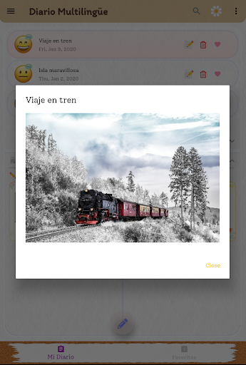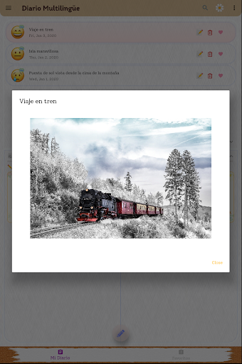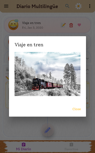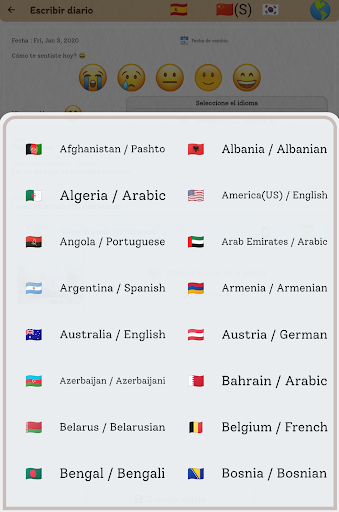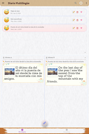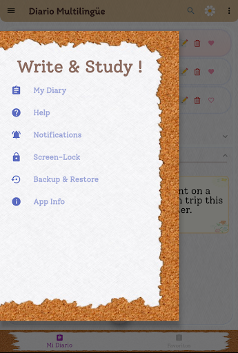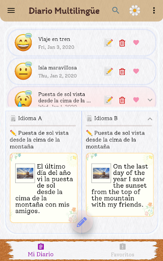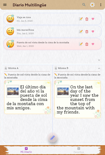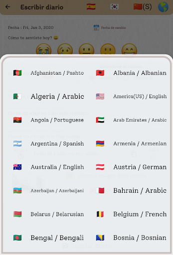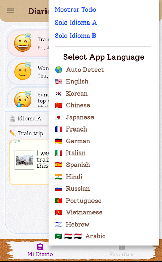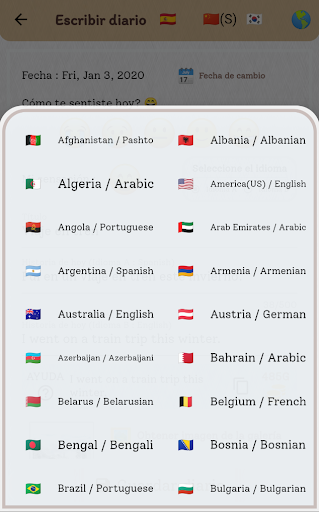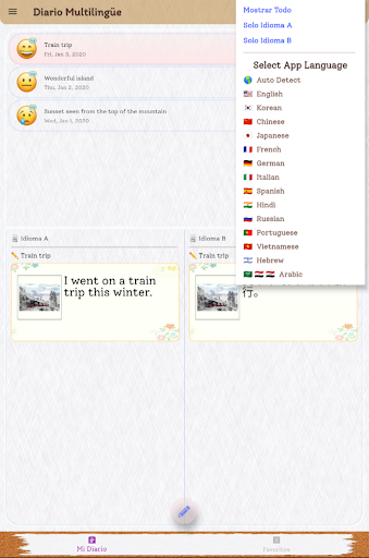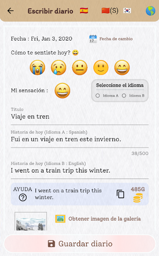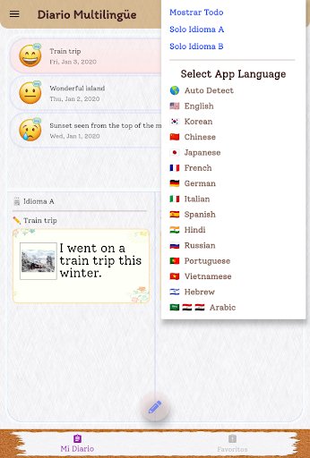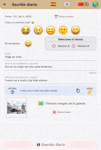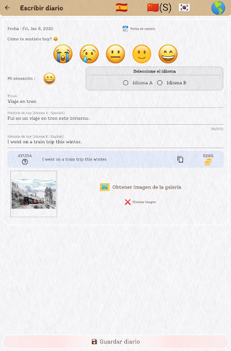 - Escriba, edite y elimine diarios en 2 idiomas de su elección.