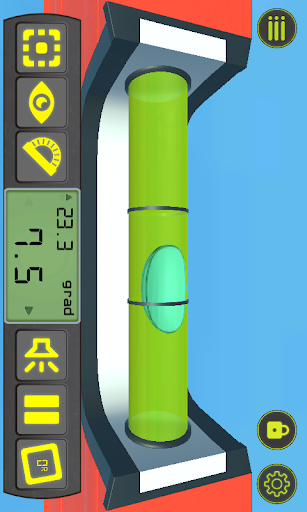 Además de nivel de burbuja, tiene la función de inclinómetro digital, que mediante una pantalla muestra la inclinación con mayor exactitud y de manera práctica. Se puede observar la inclinación simultánea en dos ejes (roll y pitch). La pantalla digital también visualiza iconos de flechas para conocer en todo momento el sentido de la inclinación (hacia la derecha o izquierda, y hacia adelante o atrás). La pantalla gira de acuerdo a la orientación del teléfono, facilitando la lectura del valor registrado.
