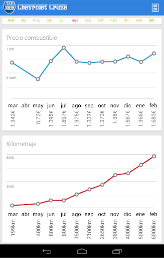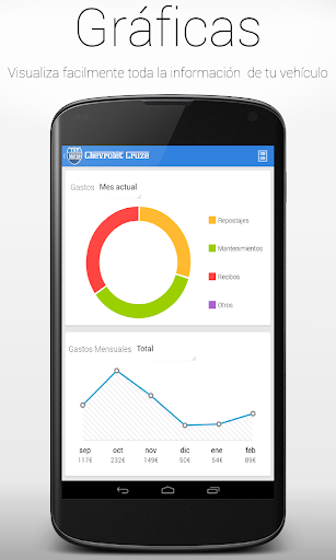 ★ Gráficas para poder visualizar de una forma clara y sencilla la distribución de gastos, consumo de combustible, kilometraje, precio del combustible...