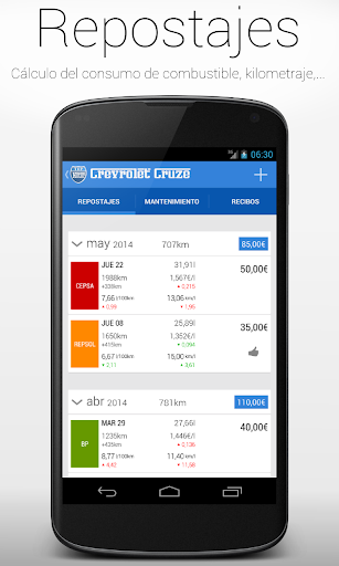 ★ Gestión del consumo de combustible indicando los kilómetros entre repostaje, la diferencia de precio, cual ha sido el mejor repostaje del mes, etc.