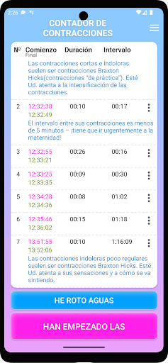Si las contracciones corresponden al inicio del trabajo de parto, la aplicación indicará la necesidad de ir a la maternidad.