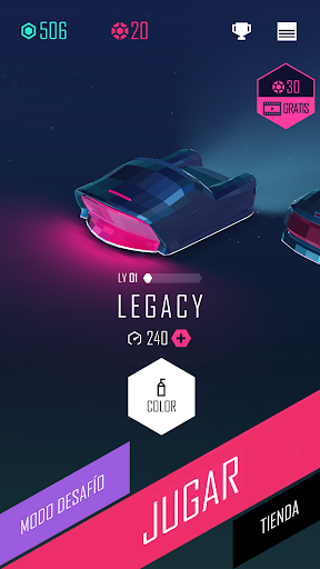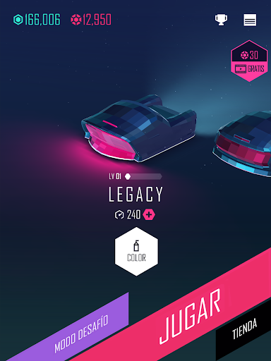 Descubre los espectaculares fondos y desbloquea todos los coches, dotados de un diseño espectacular. Únete a este frenético viaje por la música electrónica e impresionantes imágenes.