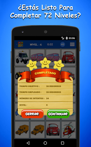 El Juego De Memoria De Vehículos Para Niños es uno de los juegos más utilizados en lo que respecta al desarrollo de la inteligencia y la mejora de la memoria visual. Empareja cientos de imágenes en diferentes categorías y desarrolla tu inteligencia, mejorando tu memoria. Es un juego de mesa clásico de nuestra infancia. El juego consta de dos modos: