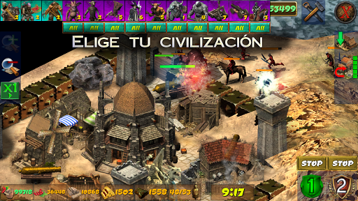 Dispones de una amplia gama de unidades empezando por simples guerreros o arqueros hasta magos y cañones móviles. (cada uno tiene un precio en oro, comida o hierro)