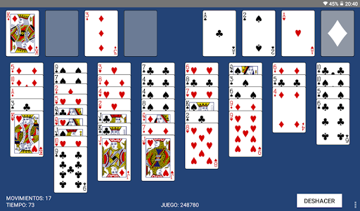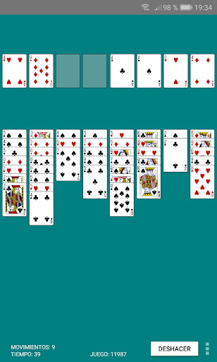 - El juego se inicia con ocho montones dispuestos en la mesa en los que se encuentran todas las cartas de la baraja descubiertas. Durante la partida es posible mover las cartas siempre que se formen montones con escaleras descendentes de colores alternos (rojas y negras)