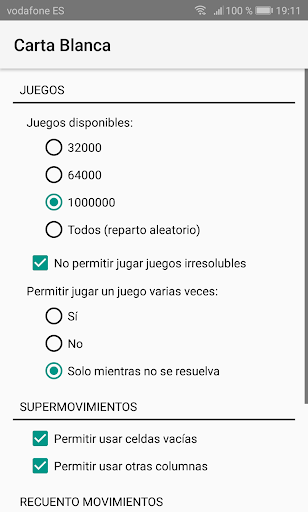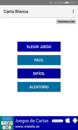 - Juega al Carta Blanca. Posibilidad de elegir entre los repartos clásicos o uno aleatorio.