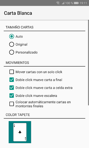 - Configurable: Tamaño cartas, sonido, marcadores, disposición cartas, color tapete, color marcadores, método de movimiento de cartas (un sólo click, doble click,...)...