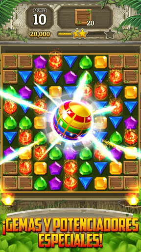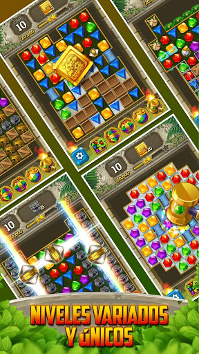 Resuelve los juegos de puzzle Match 3 del templo de la jungla de una manera inteligente para obtener la puntuación más alta, convertirte en una leyenda y desbloquear valiosas recompensas gratis para ayudarte en los niveles de desafío de explosión de gemas más difíciles!