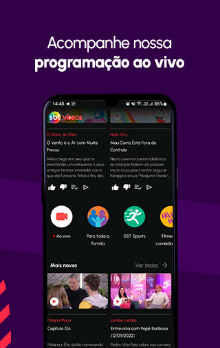 SBT Videos tiene una nueva forma de ver los programas que ama, con todo lo organizado, de una manera fácil de acceder a usted y a su familia se divierten y se divierten y maratones. Y episodios específicos de nuestras telenovelas, realidades y series.¡Y aún puedes sintonizar con SBT Live!