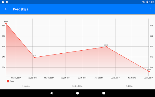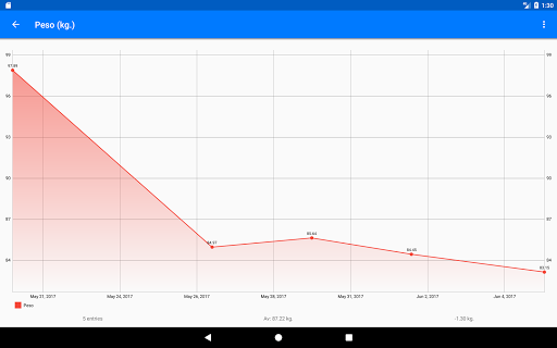 Track My Progress es una aplicación fácil de usar que te ayudará en el día a día a seguir todos tus progresos añadiendo valores indexados por tiempo. Serás capaz de ver tus progresos gracias a la representación en forma de gráfica, además se calcula la media y la diferencia total desde el primer día.