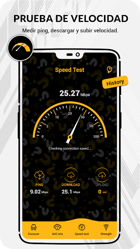 Wifi, prueba de descarga, prueba de carga, prueba de latencia, prueba de ping y red de prueba de velocidad (velocidad de transmisión de video, velocidad de carga, velocidad de descarga y más).