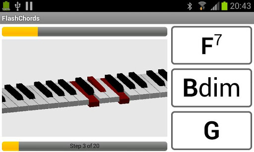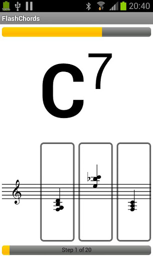 Flash Chords is a game which trains you to recognize chords on sheet music and on the piano keyboard.