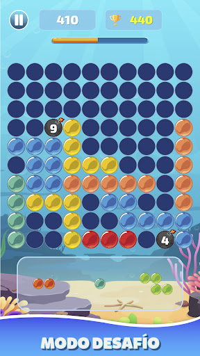 Este puzzle game consiste en arrastrar y soltar las formas de bloques de burbujas en un tablero de 10x10, si logras ordenar todos los bloques y completar líneas de burbujas de manera horizontal o vertical las burbujas explotarán ¡Pop! y tendrás más espacio para seguir jugando.