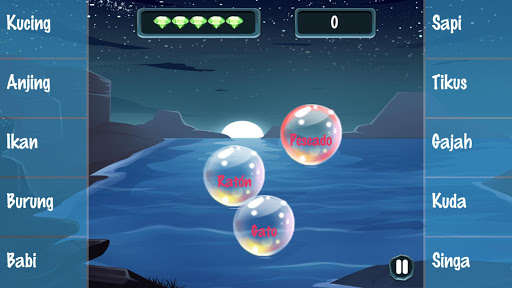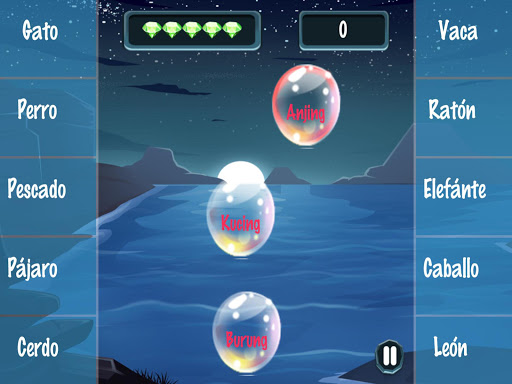 Aprendiendo idiomas como el indonesio es frecuentemente difícil, pero puede dar bastantes beneficios. Si estás viajando a Jacarta o sencillamente solo quieres leer sobre la historia de Indonesia, este aplicativo es para ti. En este atrapante pero divertido juego, practicarás oyendo y leyendo palabras – frases en indonesio. Cada palabra flotará en una burbuja y debes tocarla y explotarla seleccionando la traducción adecuada.