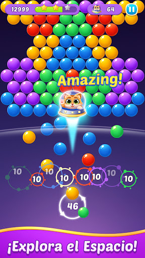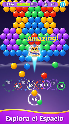 En este emocionante viaje de burbujas, ayudarás a un lindo gato llamado Marte a volar al espacio y recolectar gemas de arco iris disparando burbujas. Apunta, combina y destruye todas las bolas en esta aventura de combinación de colores y descubre la diversión definitiva de explotar burbujas!
