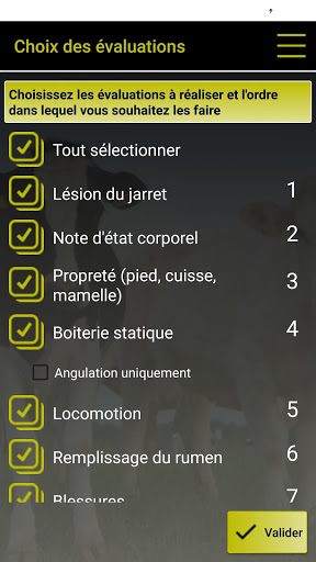 Basé sur les grilles d’interprétations reconnues, COW notes fonctionne sur la comparaison entre les photos proposées par le logiciel et ce que l’utilisateur voit chez la vache évaluée. Ainsi en cliquant sur l’image du critère qui ressemble le plus à ce que la vache exprime, le logiciel conduit facilement et rapidement l’utilisateur, en quelques clics seulement, à la notation précise des animaux.