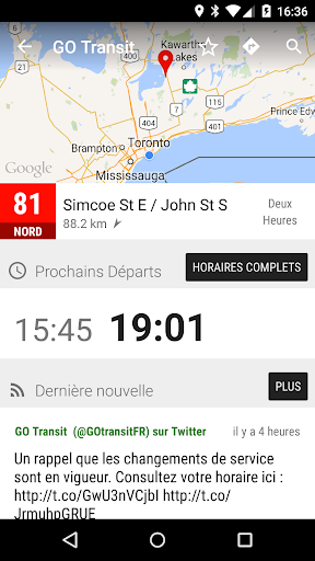 Une fois cette application installée, l'application MonTransit affichera les informations des autobus (horaires ...).