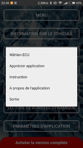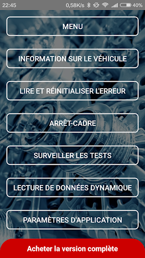 Dans la version gratuite, la fonctionnalité de votre application est limitée. Vous pouvez acheter la version complète d'Obd Arny et vous obtiendrez les prochaines fonctions payantes: