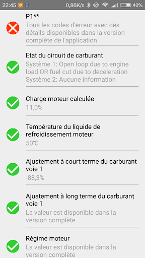 - Vous verrez des codes de diagnostic qui étaient cachés avec des astérisques dans la version gratuite;