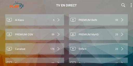 PLAY TV propose toutes les chaines Françaises (Canalsat, canal ), Belges, Suisses, Italiennes (Sky it), Allemandes (Sky De) et Arabes. La liste des bouquets ne cesse d’augmenter, à chaque ajout, vous trouverez les nouvelles chaines directement dans votre appareil applications PLAY TV, sans aucune intervention nécessaire de votre part.