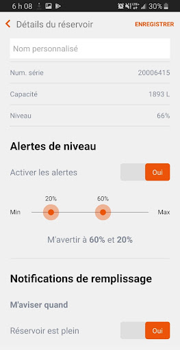 3. Recevez une alerte sur votre téléphone intelligent lorsque votre réservoir atteint un niveau prédéterminé.