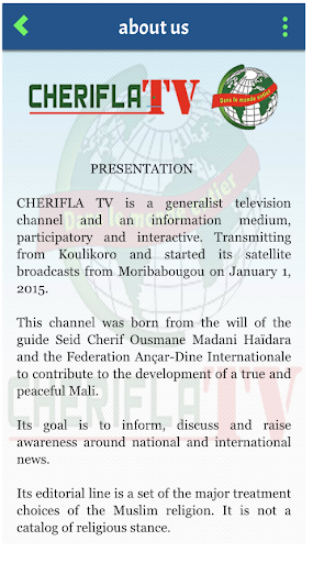 Téléphone. : 223 20240651 / 223 99861010 - E-mail: info@cheriflatv.com