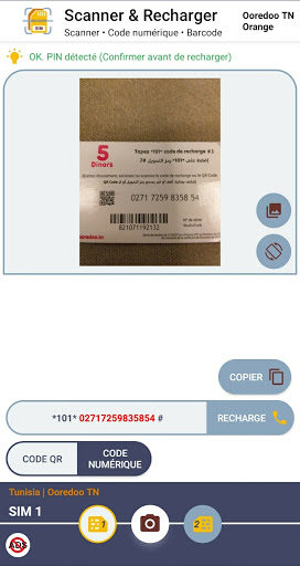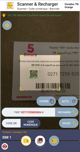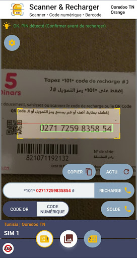 ★ Rescanner le code de recharge en cliquant sur le bouton d'actualisation qui se trouve entre les boutons de selection des cartes SIM