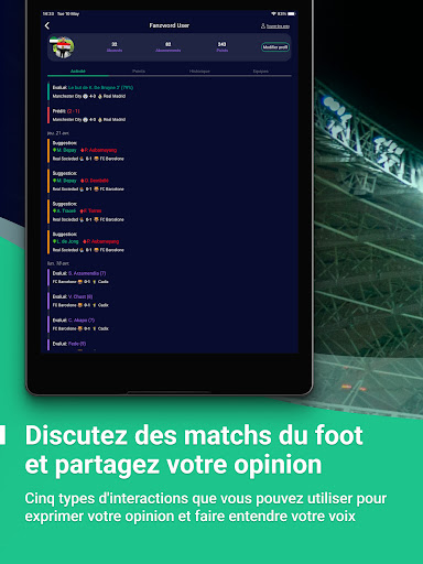 Soyez populaire et gagnez des récompenses! Il suffira de réagir sur les résultats foot en direct, une statistique foot et l’actualite football. Soyez à l’affut concernant l’equipe sports en direct, l’equipe de france de football et également sur les derniers événements des matchs, en discutant des matchs de football par rapport à l’actualite football, en notant les joueurs de football, en notant les buts et votre resultat foot et statistique foot tant attendu!