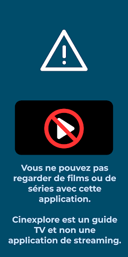 ⚠️ Remarque: Cinexplore est un guide TV et non une application de streaming. Vous ne pouvez pas regarder des films ou des séries avec Cinexplore, Vous pouvez utiliser les applications de streaming officielles à cette fin.