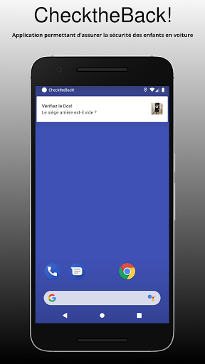 Ces dernières années, plusieurs incidents tragiques se sont produits quand des nourrissons, de jeunes enfants ou des animaux de compagnie ont été oubliés accidentellement sur le siège arrière d’une voiture et qu’il faisait extrêmement froid ou chaud. ChecktheBack! est une application développée par MobileDev99 pour aider à éviter cela. Quand vous vous garez, ChecktheBack! envoie une notification à votre téléphone Android pour vous rappeler de vérifier le siège arrière de votre véhicule. La notification est accompagnée d’une photo que vous mettez en ligne sur l’application ; un moyen supplémentaire de vous rafraîchir la mémoire et de ne pas oublier vos passagers. Deux minutes après la notification initiale, ChecktheBack! en envoie une autre, au cas où vous soyez débordé(e).