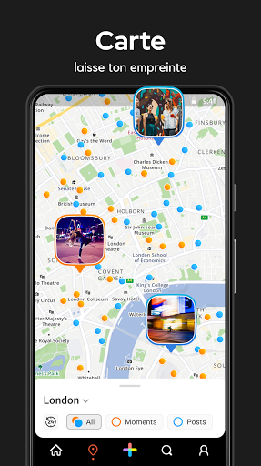 Partage ton propre contenu, que ce soit une vidéo, une story ou une simple photo. Pénétre dans les lieux les plus branchés et laisse ton empreinte sur notre mappe-monde interactive.