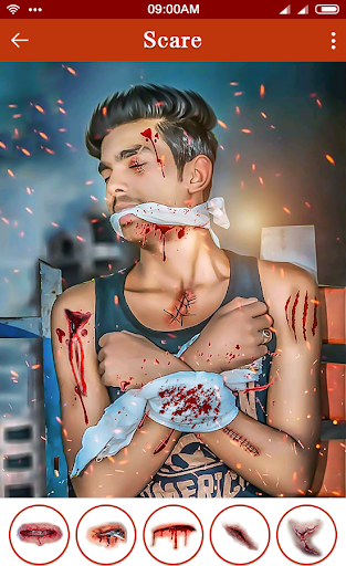 Fight Battle est la meilleure éditeur de photos de bataille pour créer une photo de visage de bataille de combat réelle! Ajoutez des plaies sanglantes, des ecchymoses, des pulvérisations de sang et de combattez le sang sur une photo facile et rapide avec une image de photo de bataille de combat génial!