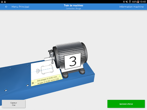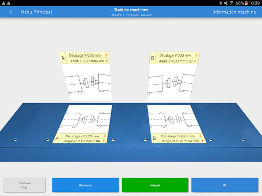 • Très simple à utiliser – L'application alignement de train de machine vise à faciliter au maximum les tâches d'alignement et à permettre d'aligner les arbres avec précision.
