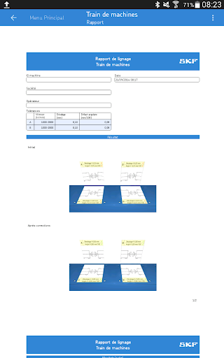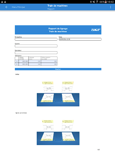 • Rapport d'alignement automatique – Les rapports d'alignement sont générés automatiquement et donnent une vue d'ensemble complète du processus et des résultats d'alignement. Les rapports peuvent être complétés par des remarques supplémentaires, une image de la machine et une signature. Le rapport est facile à partager par e-mail ou via le cloud.