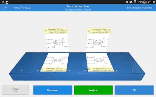 • Mode de démonstration – L'application alignement de train de machine propose un mode de démonstration fonctionnel permettant de tester l’ensemble du processus d'alignement avant d'acheter le TKSA 71.