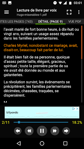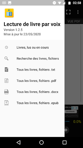 Application d'Android pour la lecture des livres, fichiers en pdf, txt, docx, epub par la voix