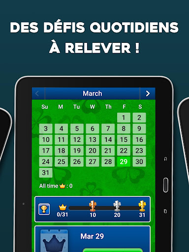 FreeCell possède un nouveau look de luxe, une TOUTE NOUVELLE fonction de progression d’objectif et un système de suivi des scores mis à jour, avec un NOUVEAU meilleur score personnel ! Vous recevrez chaque jour de nouveaux objectifs à atteindre. Remplissez vos objectifs quotidiens pour gagner de l'XP et monter de niveau pour obtenir des titres exclusifs !