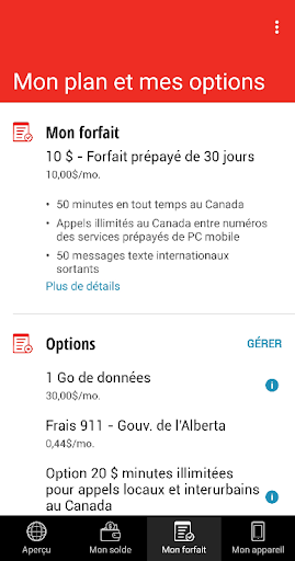 • Voir les détails de votre solde prépayé