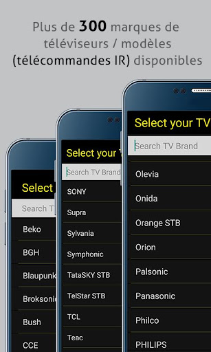 • Cette application est compatible avec les marques / modèles de téléviseurs actuellement disponibles dans l'application. Ceci est une application de télévision à distance non officielle pour ces marques de télévision.