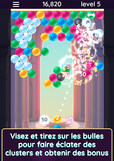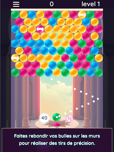 Que vous soyez un débutant ou un joueur vétéran, Bubble Shooter est fait pour vous. Il suffit d'utiliser votre doigt pour viser avec votre bulle, et de tirer sur un groupe d'au moins 2 bulles de même couleur pour les faire éclater ! L'objectif est de faire éclater toutes les bulles du tableau, et il ne faut pas oublier qu'on peut faire tomber des bulles en faisant exploser celles se trouvant au-dessus ; c'est la clé de la victoire dans Arkadium's Bubble Shooter. En jouant, vous obtiendrez des bonus de bulles qui vous permettront de les faire éclater plus rapidement. N'oubliez pas que les bulles rebondissent sur les murs, ce qui permet de faire des tirs stratégiques !