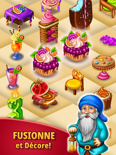Mélangez des bonbons 🍭, des cookies 🍪, des donuts 🍩, et d’autres sucreries. Tout ce que vous faites aide la réparation et décoration de l’usine.